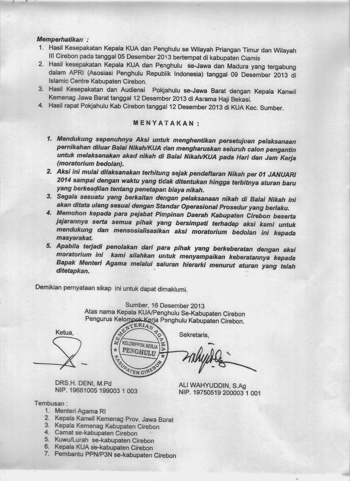 Desember 2013 perihal pernyataan Sikap Kepala KUA dan Penghulu Se-Kabupaten