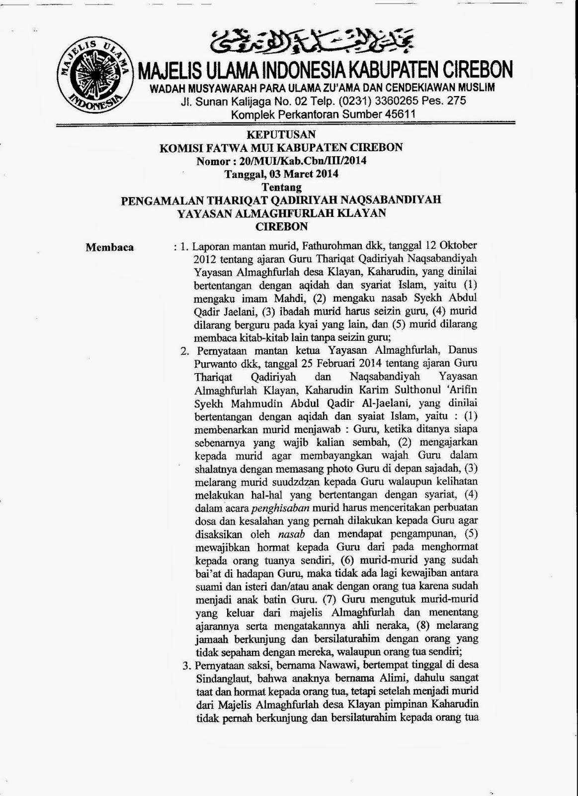 dilihat dalam putusan fatwa selengkapnya diunduh disini FATWA