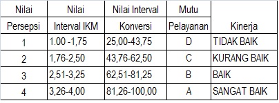 Dengan demikian nilai indeks unit pelayanan hasilnya dapat disimpulkan sebagai berikut :